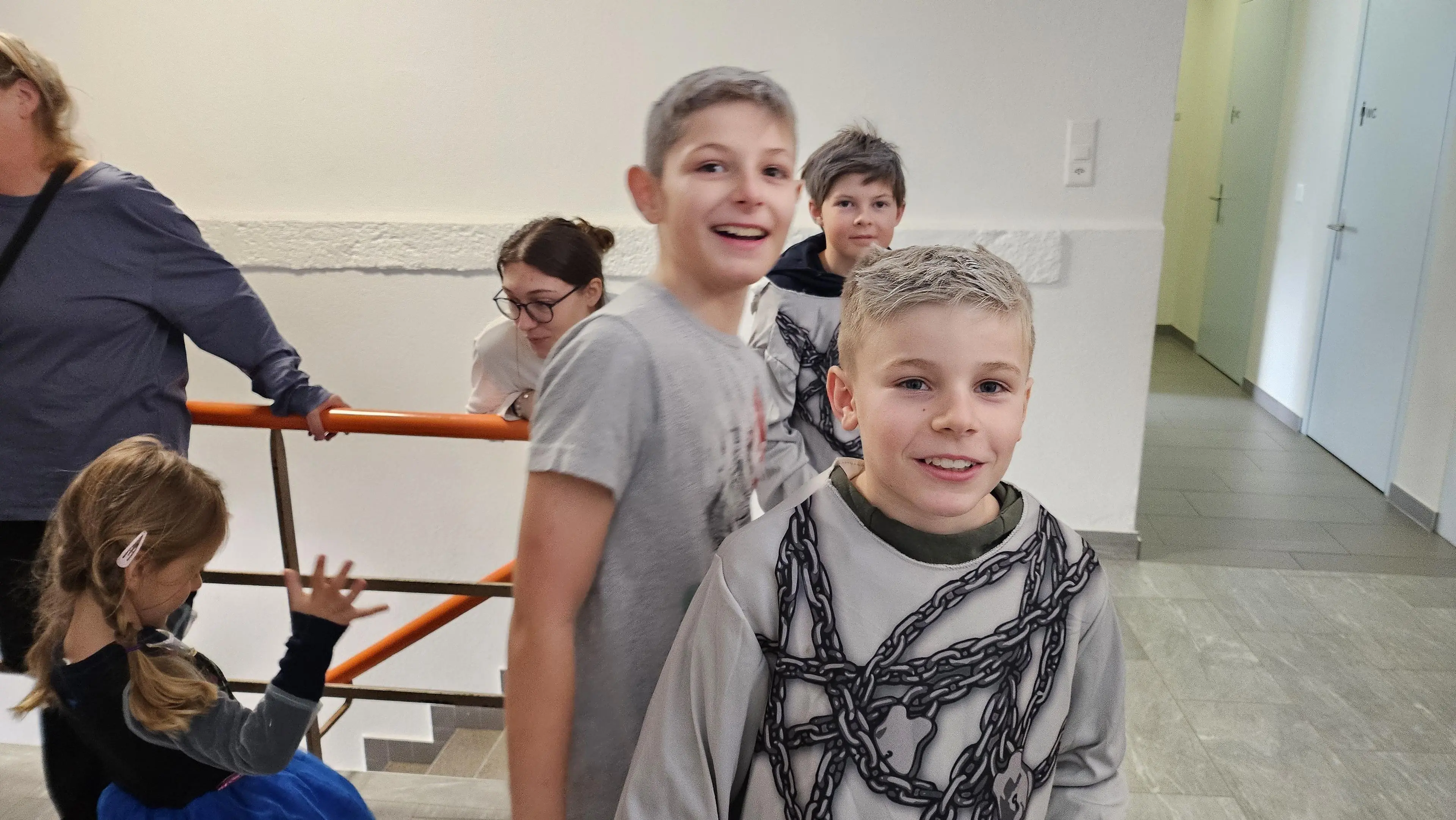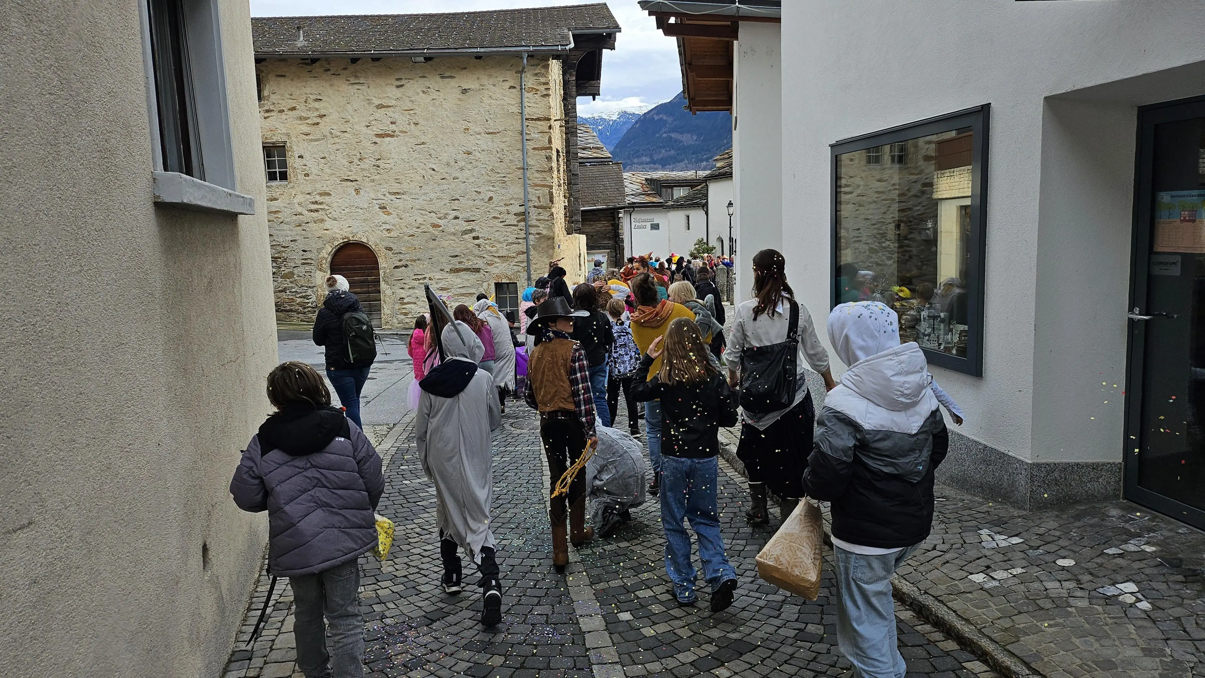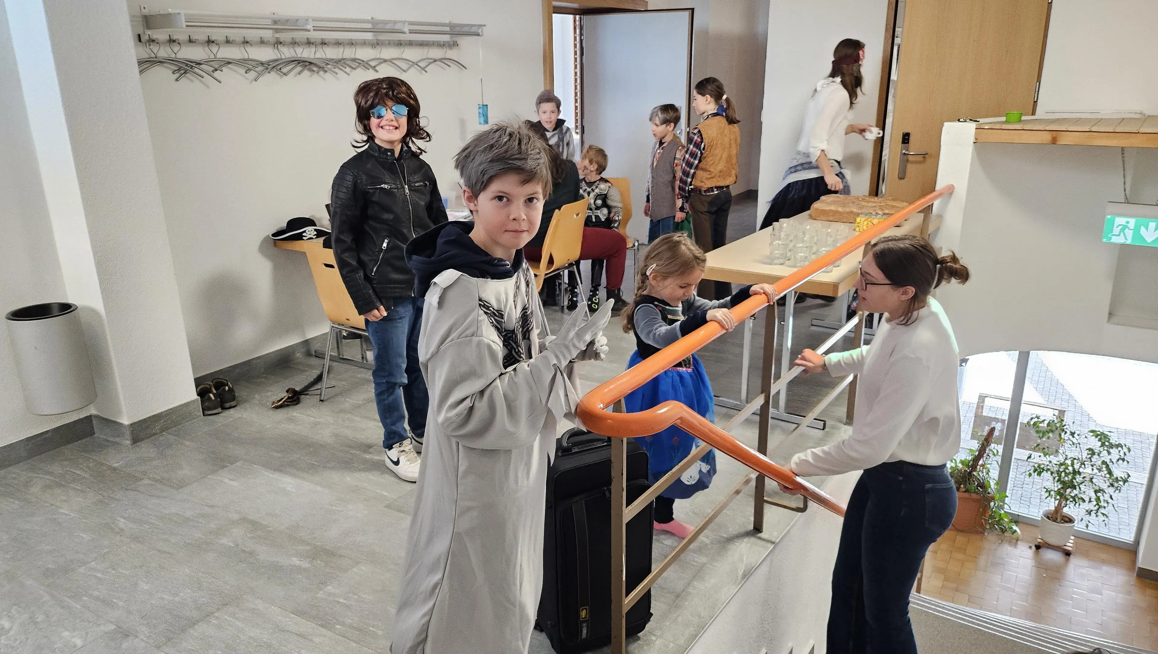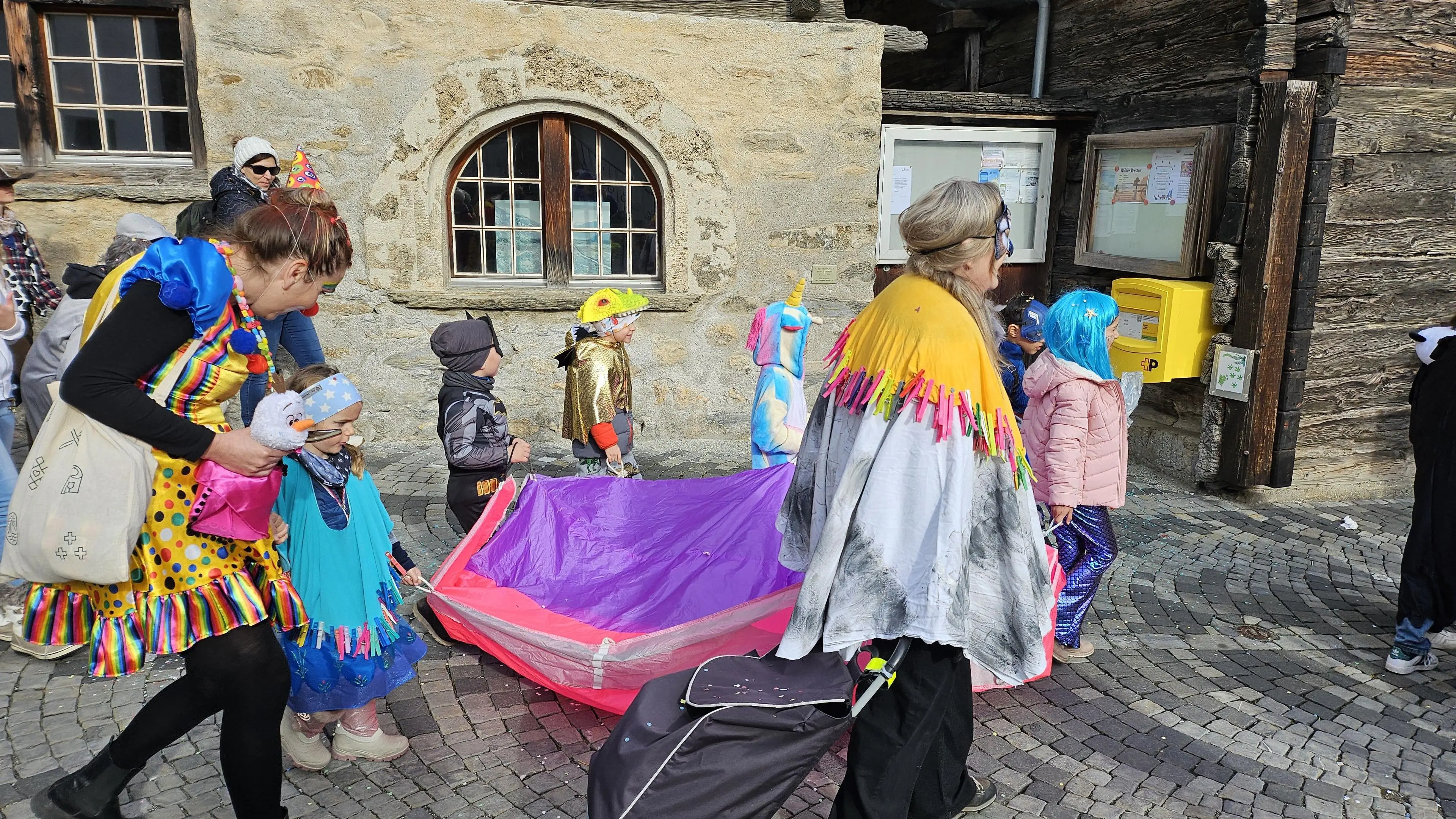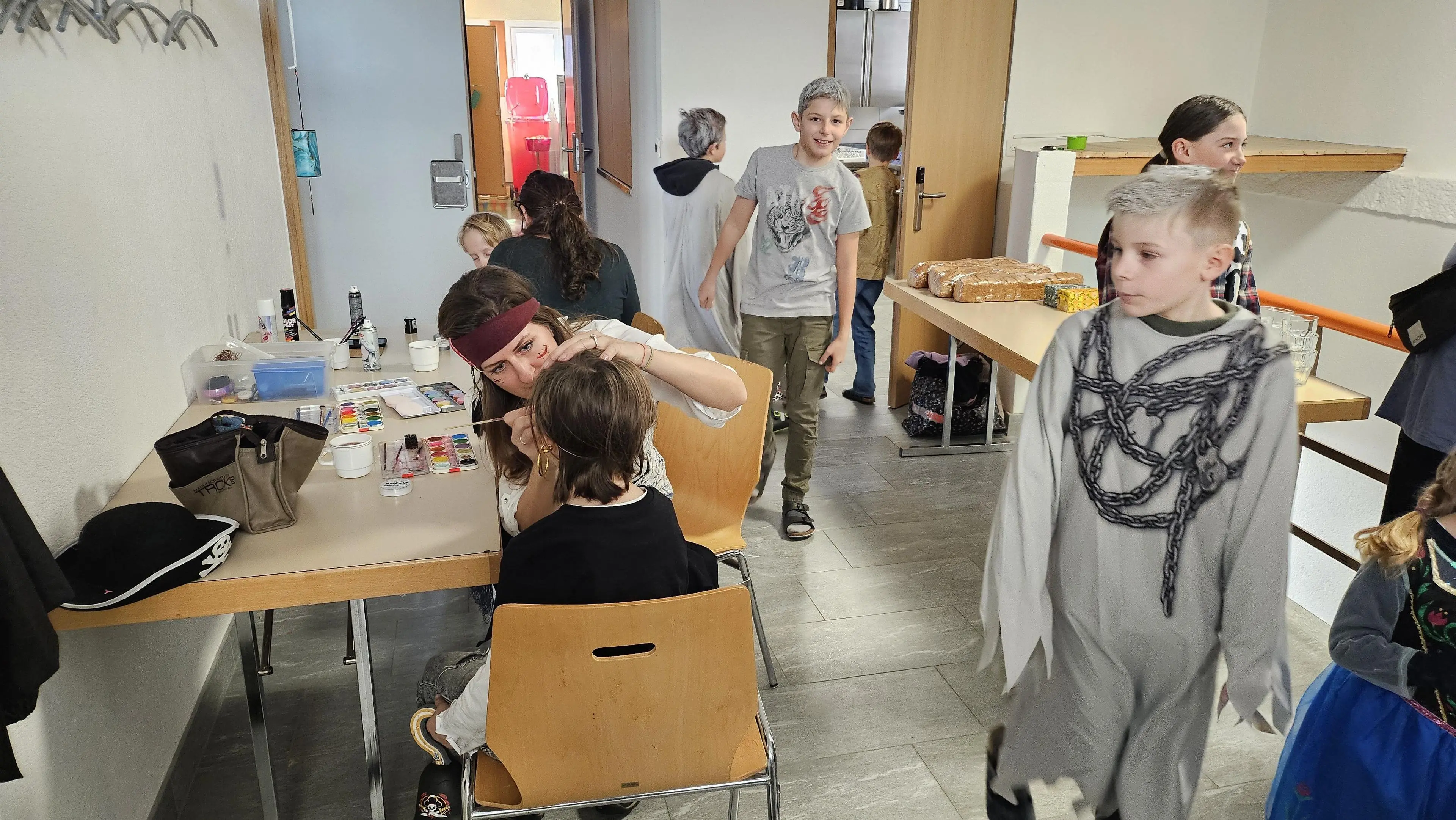 Nach zwei Stunden Schule haben wir uns in Eggerberg vorbereitet. Wir haben uns geschminkt und umgezogen (und einige haben bereits Party gemacht ;)).