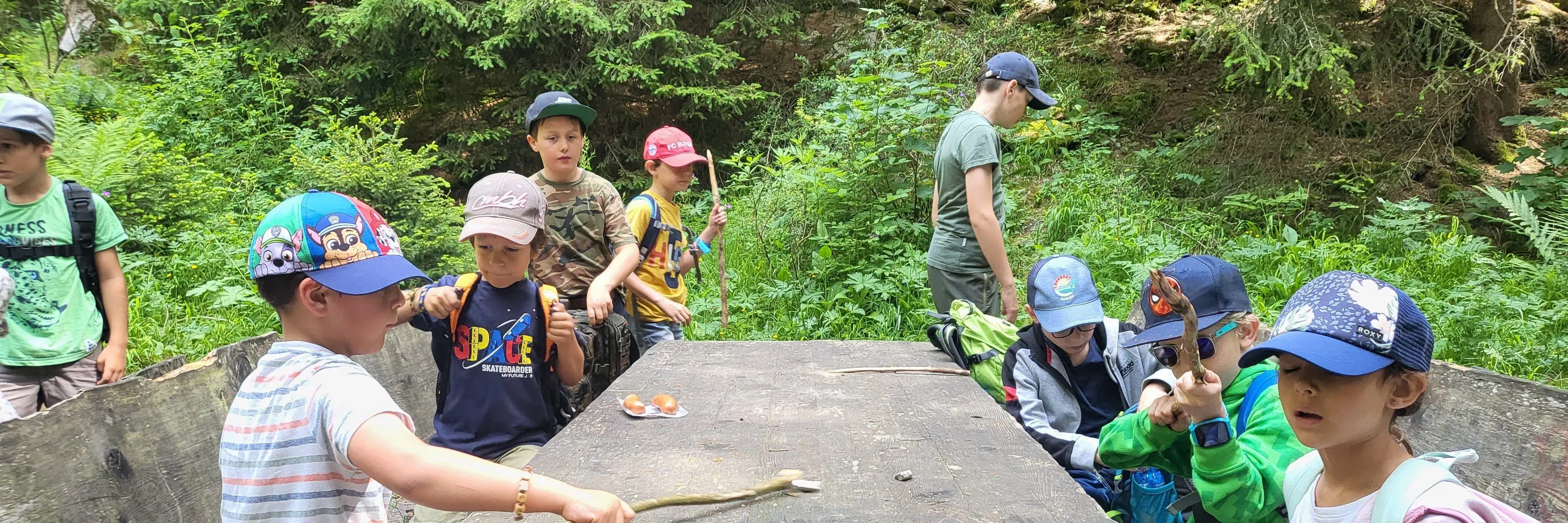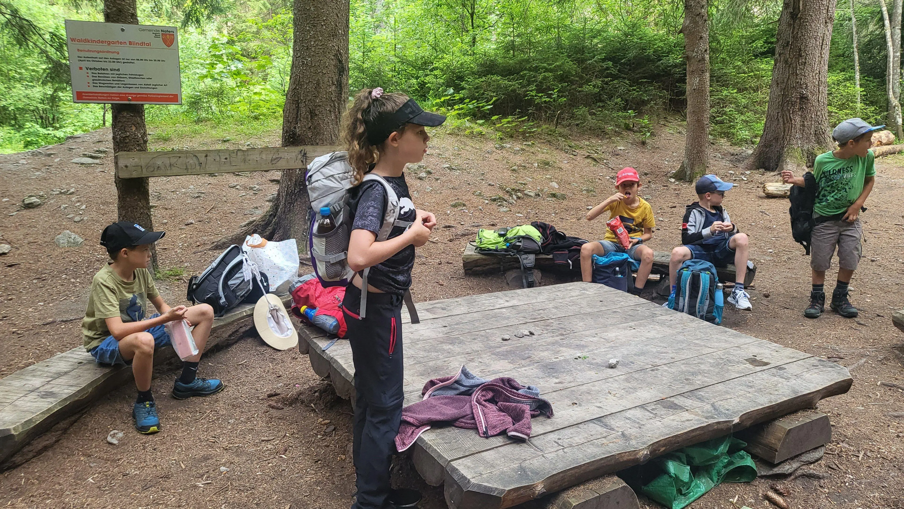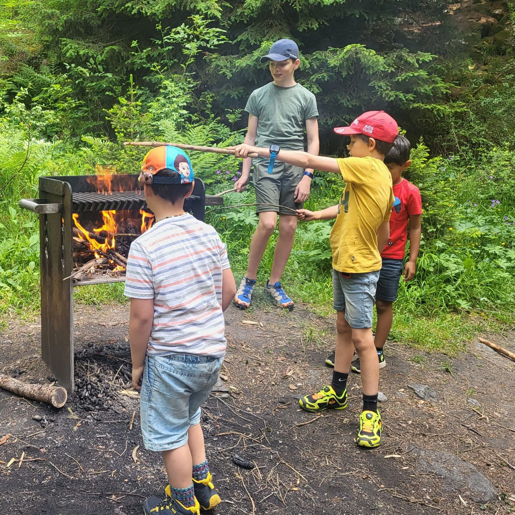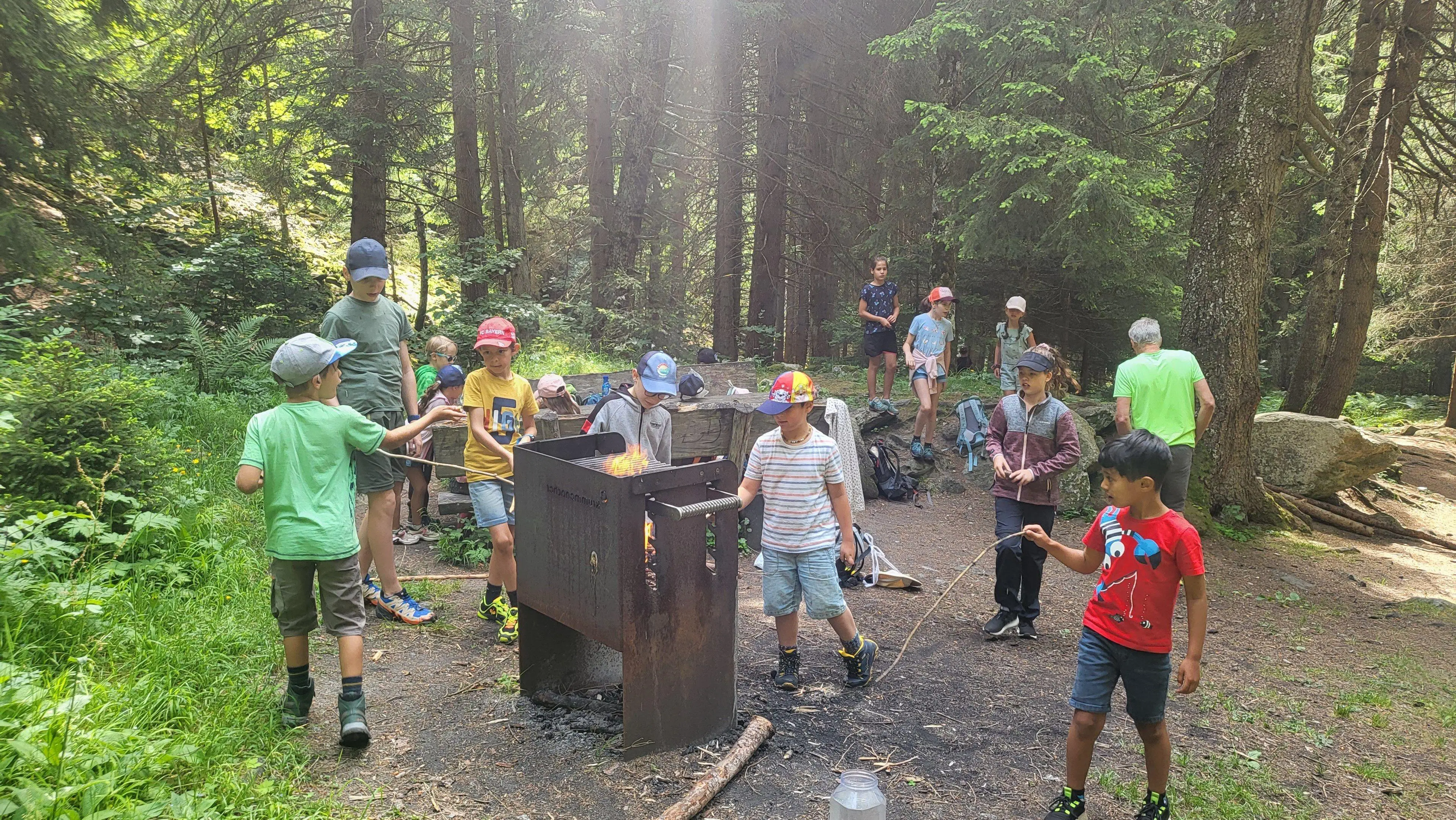 Wir versammelten uns am Bahnhof in Visp. Dann gingen wir mit dem Zug nach Brig. Danach gingen wir mit dem Postauto in das Blindtal. Wir liefen zu einer Grillstelle. Dort haben wir ein Feuer gemacht und grilliert.