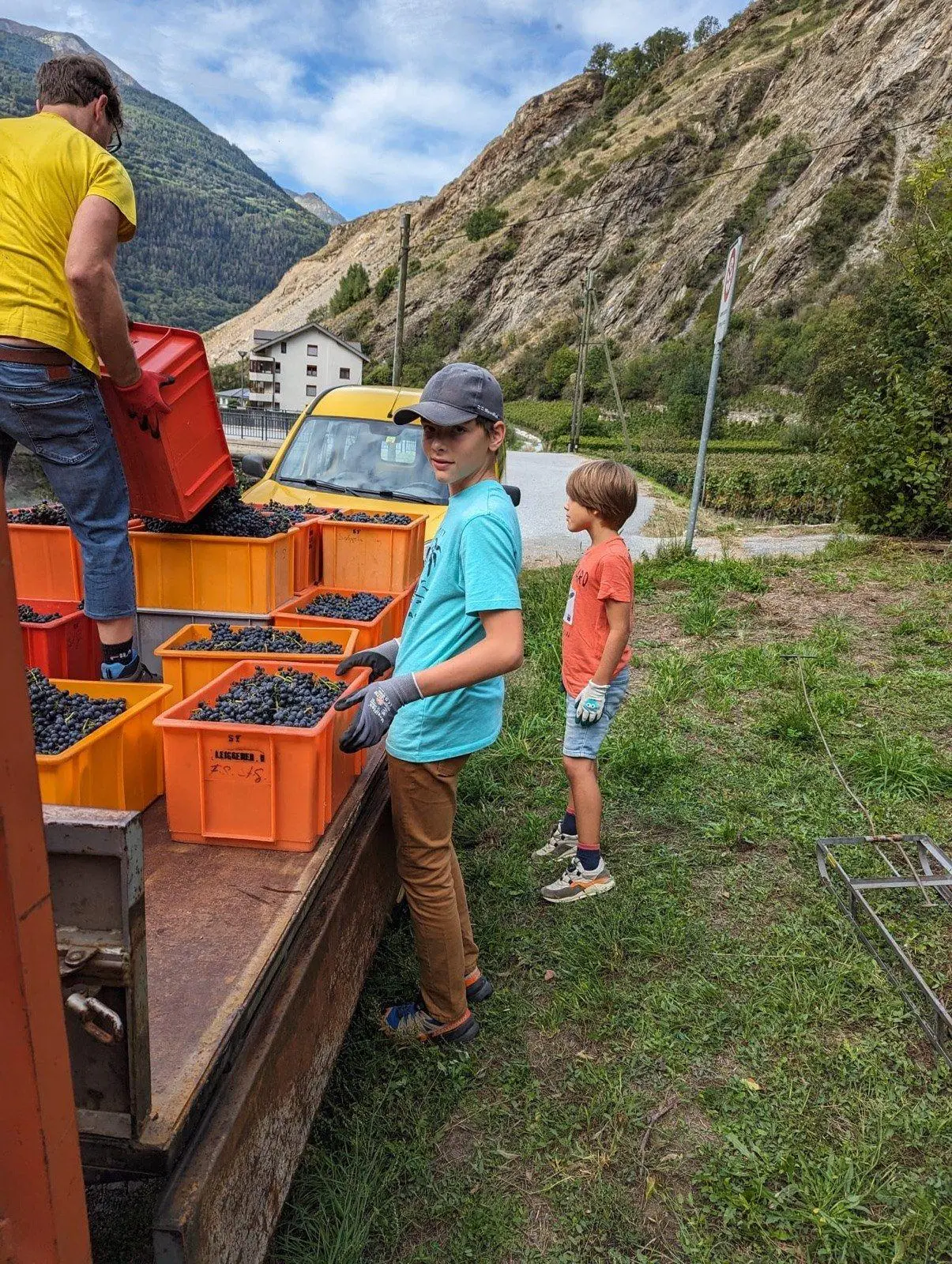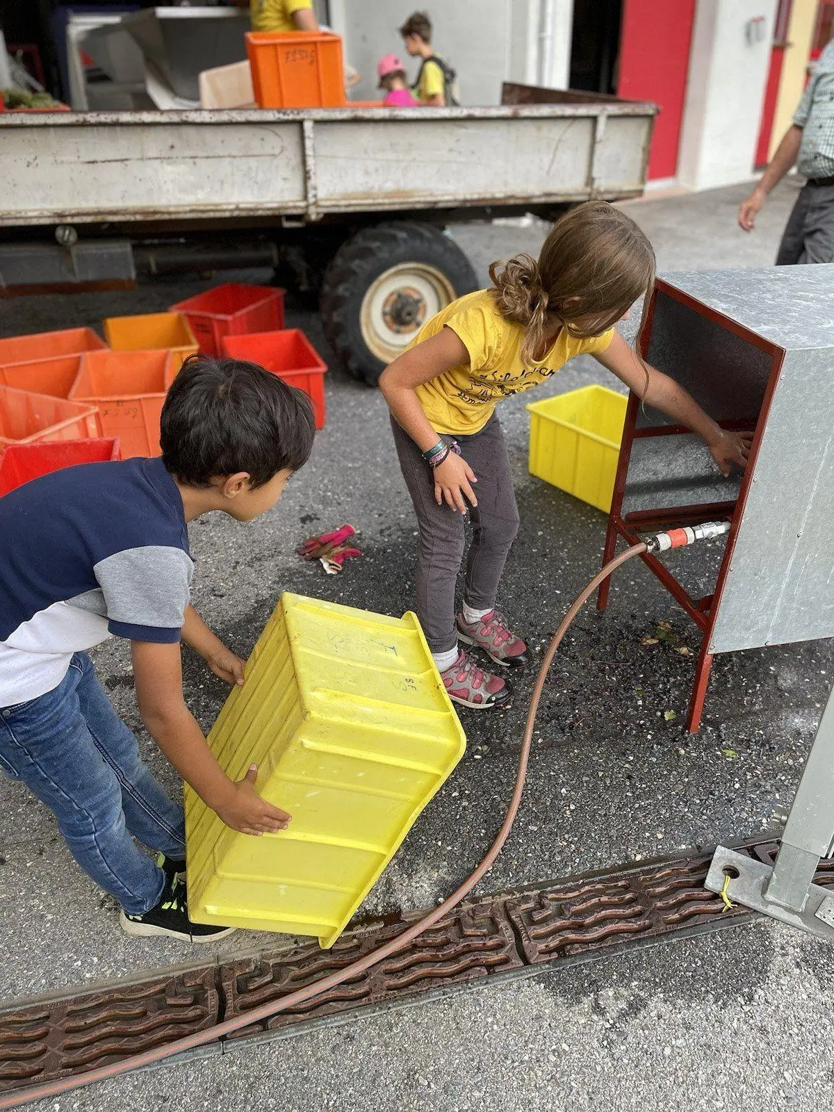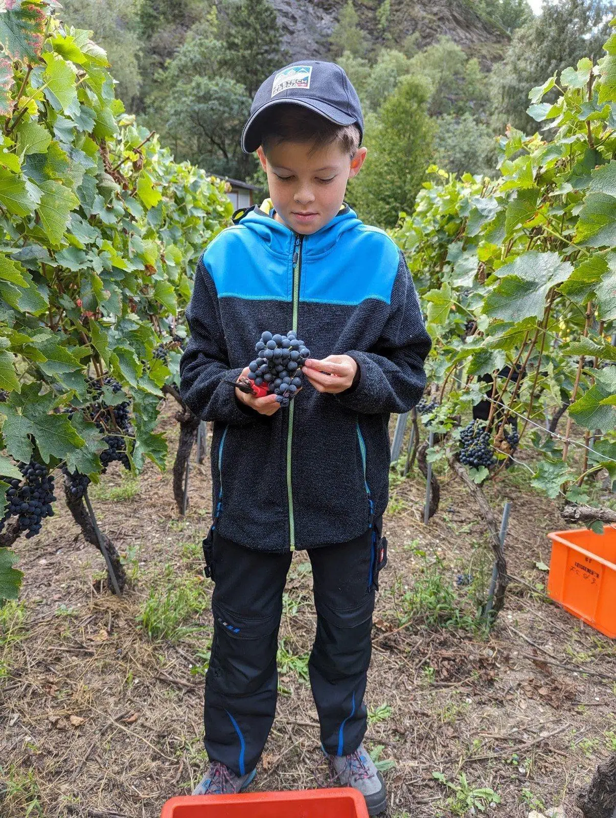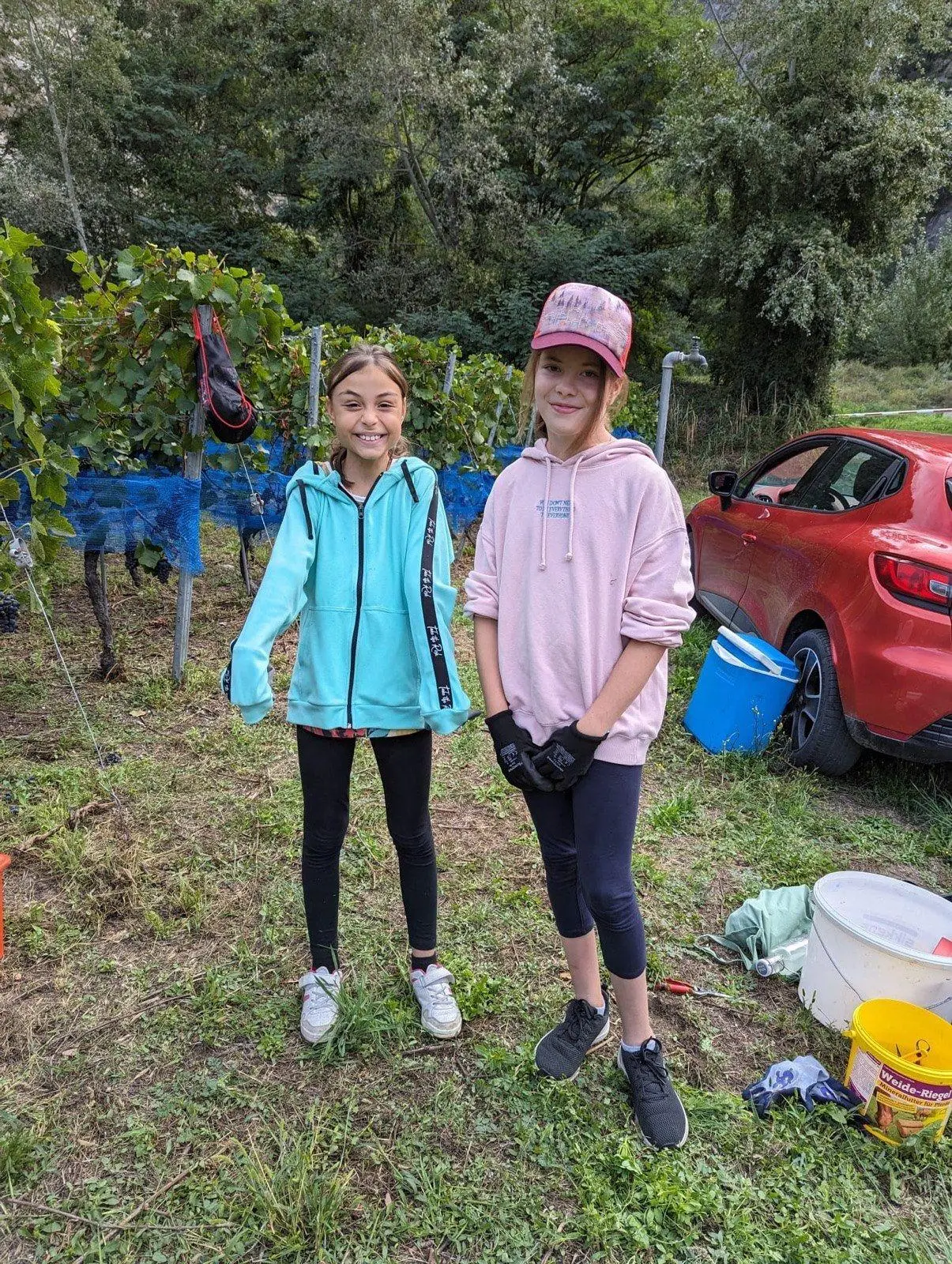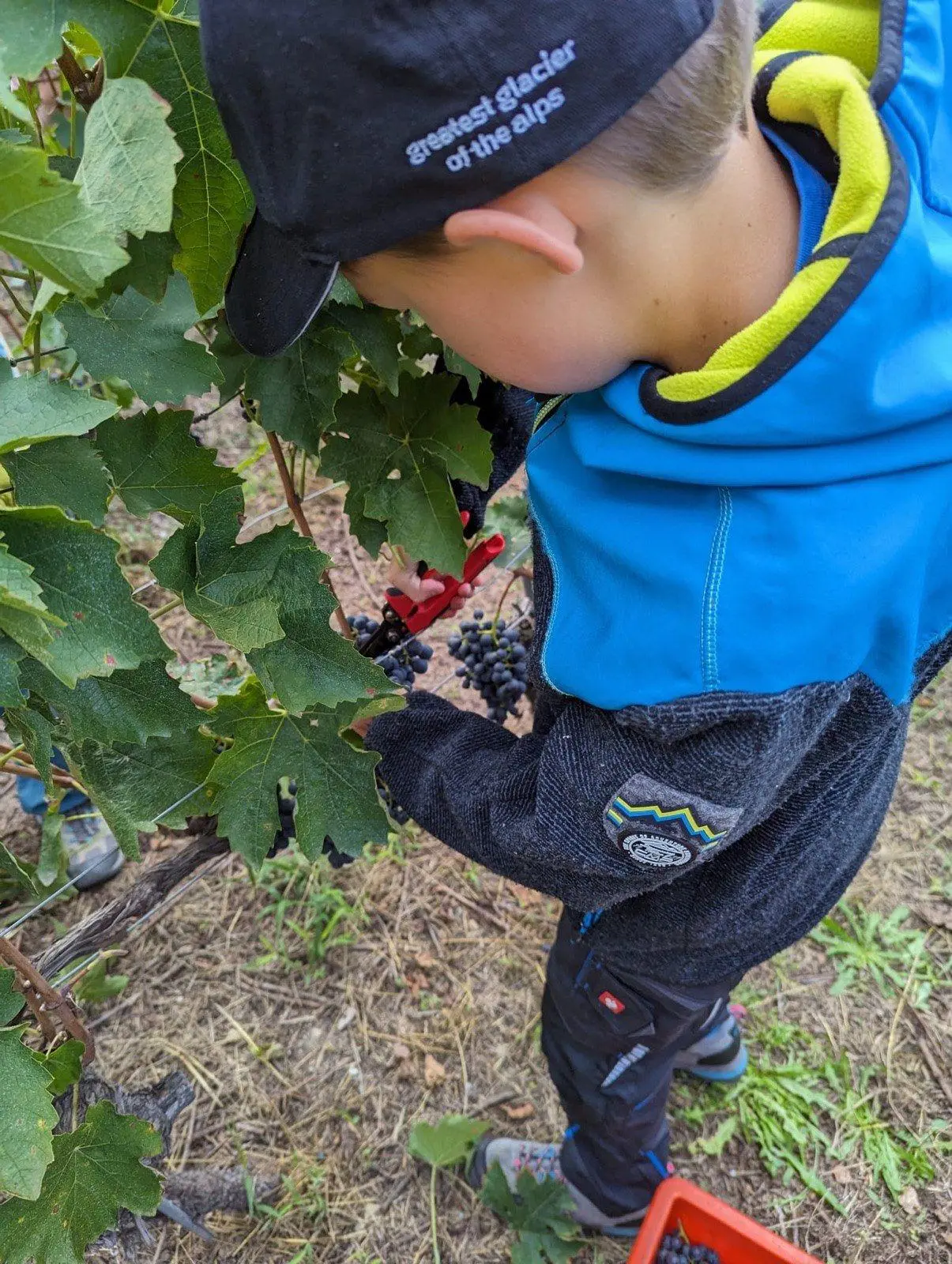 Wir haben die Trauben geerntet, in Kisten verpackt und transportiert. Anschliessend durften wir auch vom Traubensaft kosten. Er war sehr lecker.