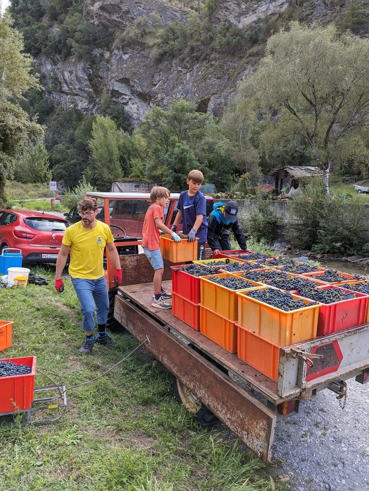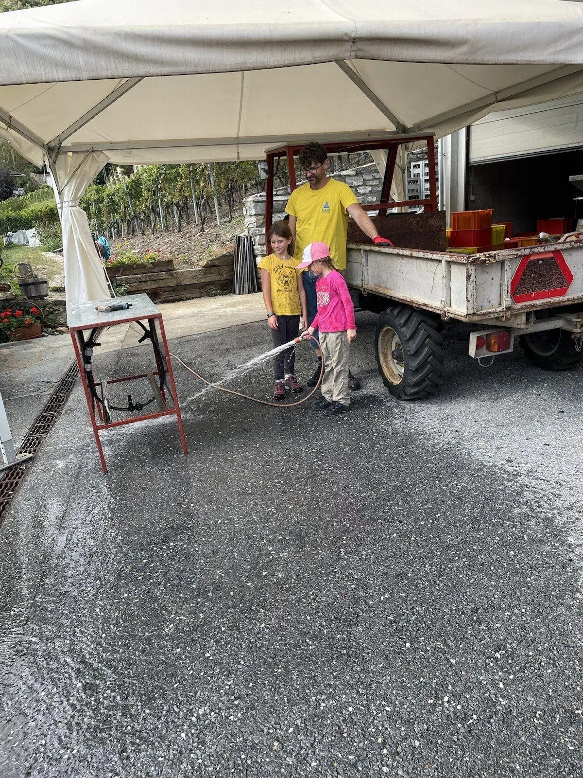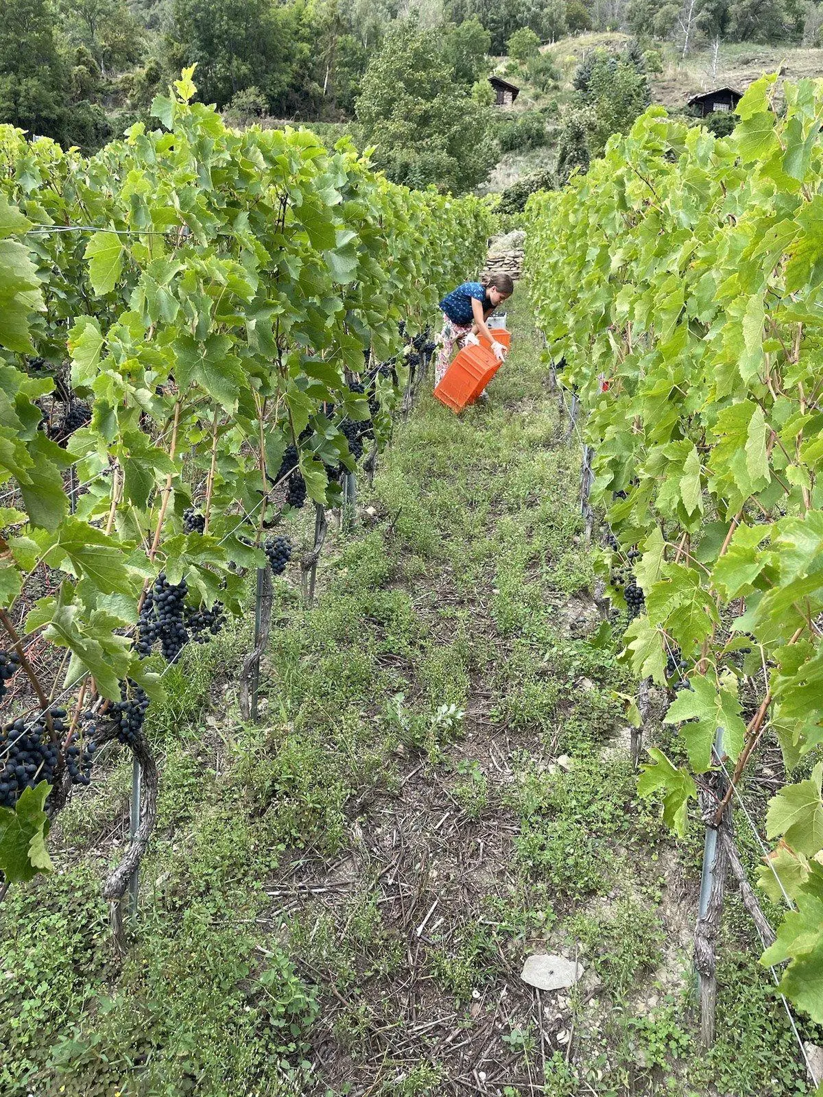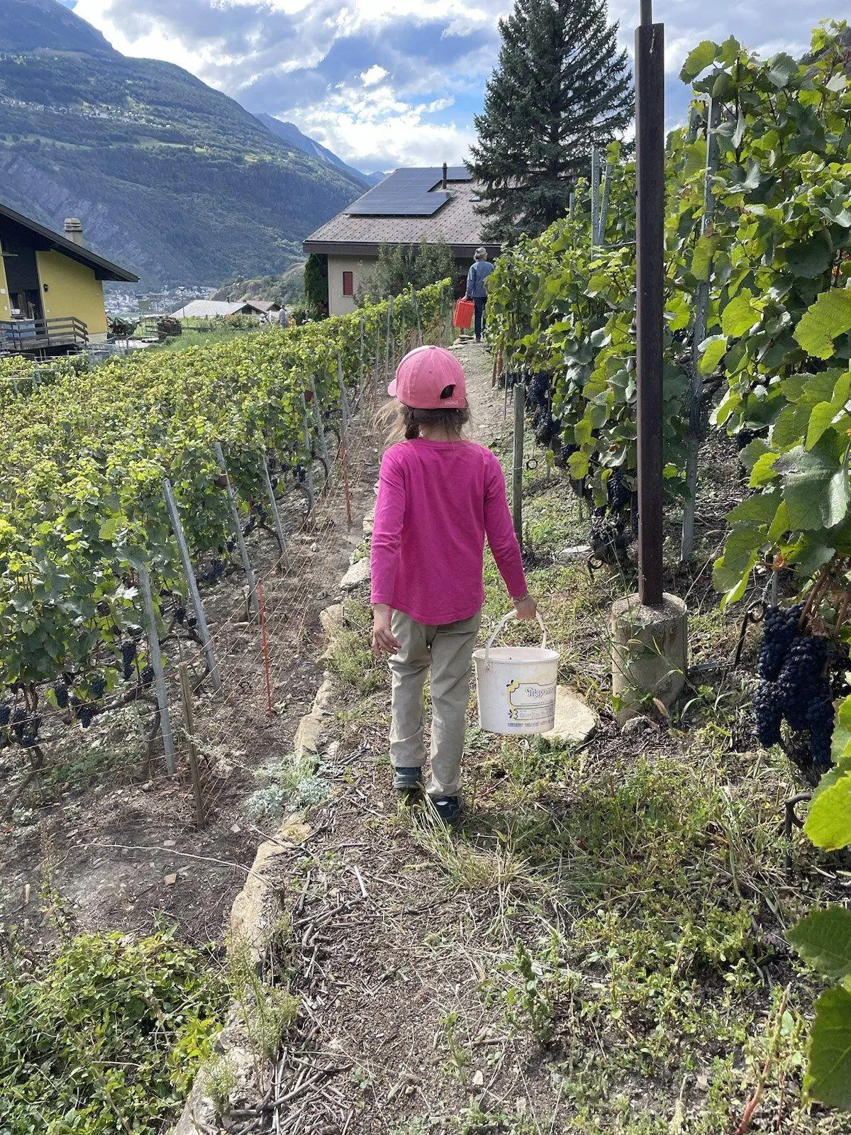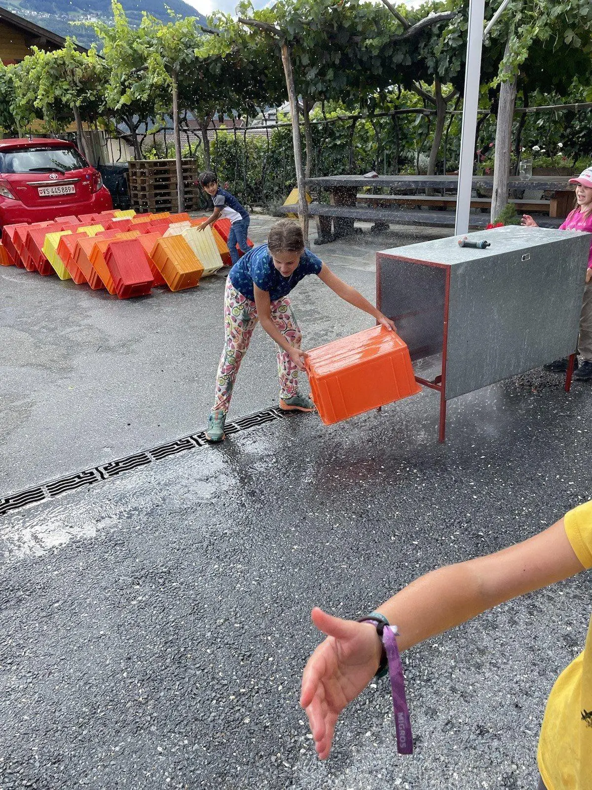 Wir haben die Trauben geerntet, in Kisten verpackt und transportiert. Anschliessend durften wir auch vom Traubensaft kosten. Er war sehr lecker.